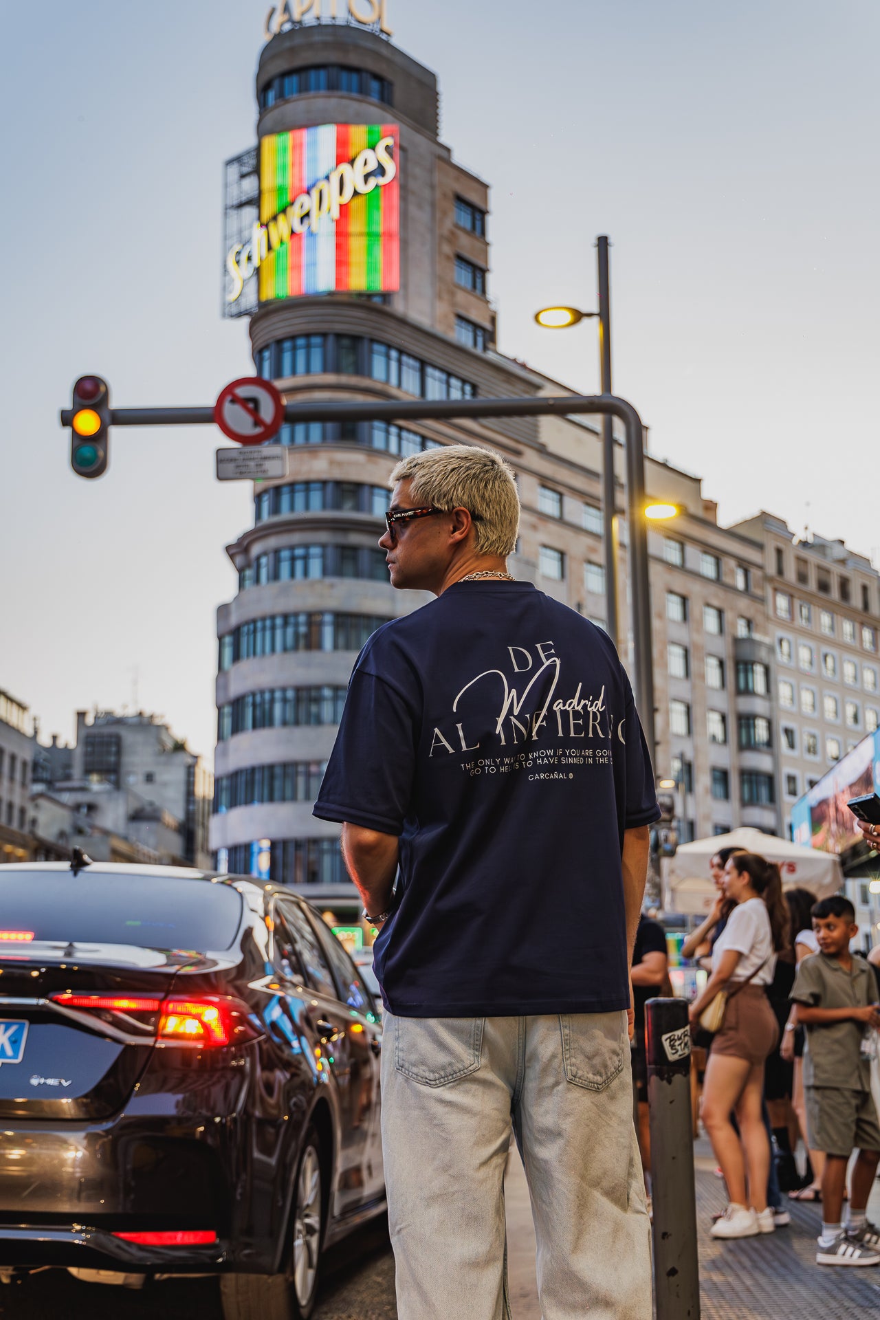 Un guiño descarado a la mítica frase que todos conocen, pero nadie se atreve a cuestionar. Aquí, el cielo no es el destino: el viaje es hacia el lado oscuro de la ciudad. Porque Madrid no solo brilla; también arde, tienta y te envuelve.